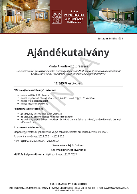A Park Hotel Ambrózia utalvány remek választás!